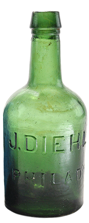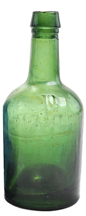 Green, Improved Pontil, Double Tapered Collar, Hand Blown, Cork Stopper, Circulated: 1845-1848, Philadelphia, PA, United States