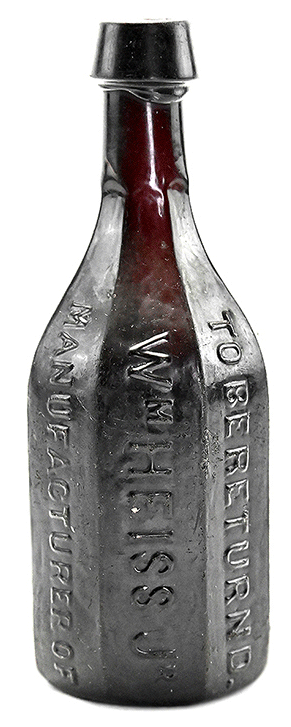 Embossed: WM HEISS JR // MANUFACTURER OF // SUPERIOR MINERAL // AND SODA WATERS // NO 213 NORh 2d ST // PHILAD.A. // THIS BOTTLE // TO BE RETURNED // |