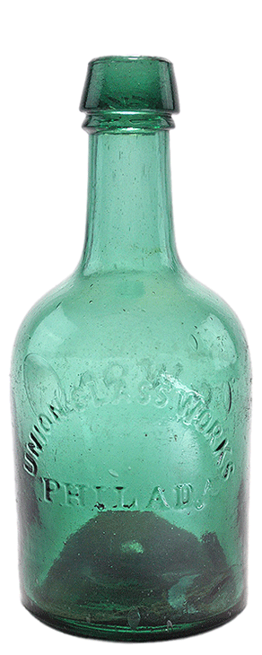 Light Bluish Green, Improved Pontil, Double Tapered Collar, Hand Blown, Cork Stopper, Reading, PA, United States