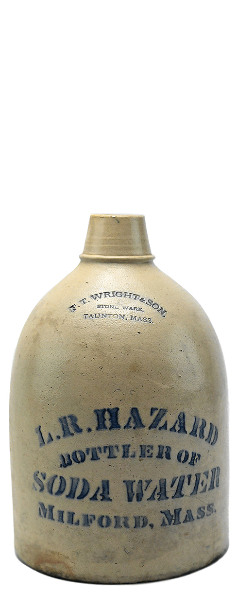 Glazed: ( ) F. T. WRIGHT & SON / STONEWARE / TAUNTON, MASS. (impressed) / ( ) L. R. HAZARD / ( ) BOTTLER OF / SODA WATER / MILFORD, MASS. (glazed) // c // |