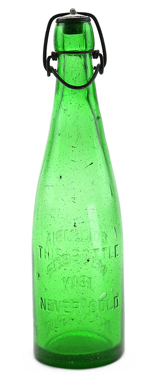 Light Kelley Green, Smooth Base, Rounded Taper, Hand Blown, Hutter Swing Bail Stopper, Saint Louis, MO, United States Comments: Stopper printed "WITTMANN-ROST BREW CO WEISS BEER ST.LOUIS MO." Contributor/Source: Tod von Mechow