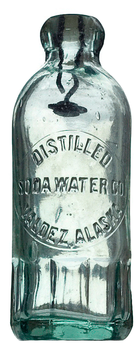 Embossed: ( ) DISTILLED / SODA WATER CO. / ( ) VALDEZ, ALASKA (all in round plate) // c // // b // ( ) W. F. & S. / ( ) MIL |