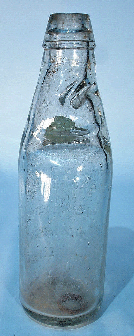 Clear, Smooth Base, Long Tapered Collar, Hand Blown, Codd Glass Ball Stopper, Circulated: 1910-1913, Philadelphia, PA, United States Comments: Aqua marble. Contributor/Source: Tod von Mechow