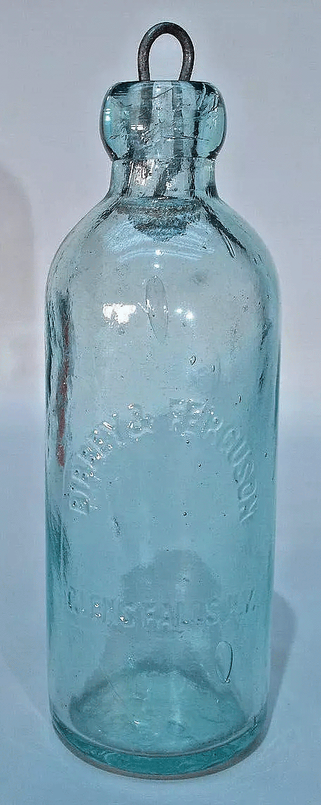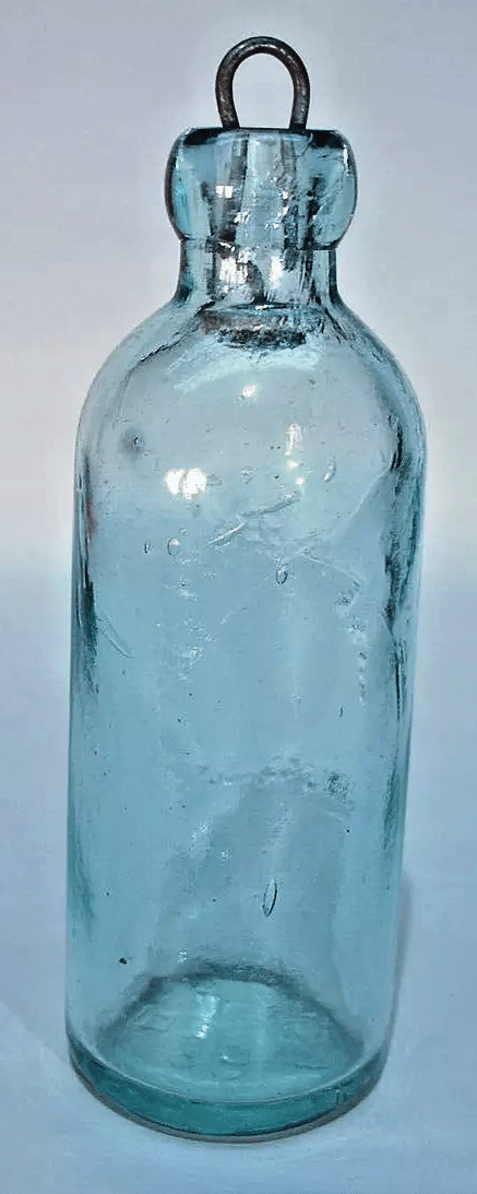 Aqua, Smooth Base, Rounded Collar, Hand Blown, Hutchinson Internal Spring Stopper, Glen Falls, NY, United States