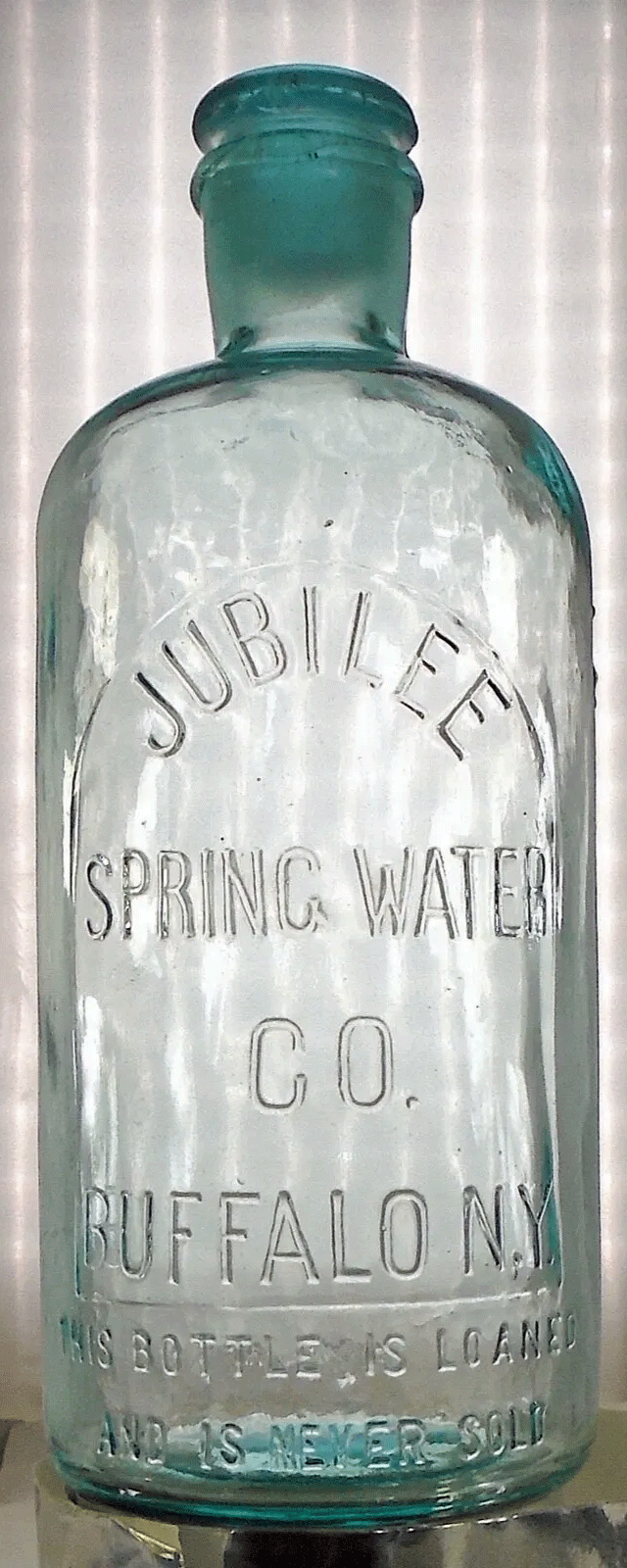 ) JUBILEE / SPRING WATER / CO. / BUFFALO, N. Y. (all in horseshoe plate) / THIS BOTTLE IS LOANED / AND IS NEVER SOLD // FIVE PINTS // // b // 101 / ____